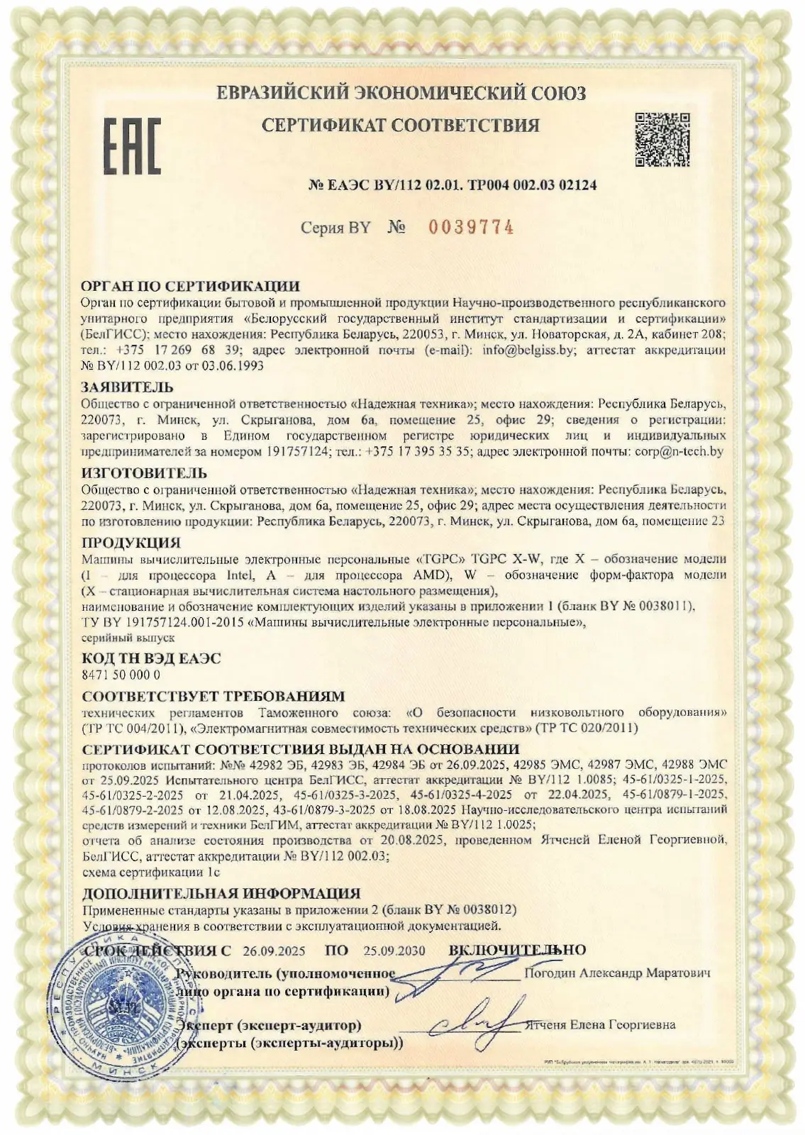 Персональные компьютеры «TGPC» соответствуют самым современным стандартам качества и безопасности, имеют широкую линейку моделей для использования в различных сферах бизнеса, производства, образования, дома.