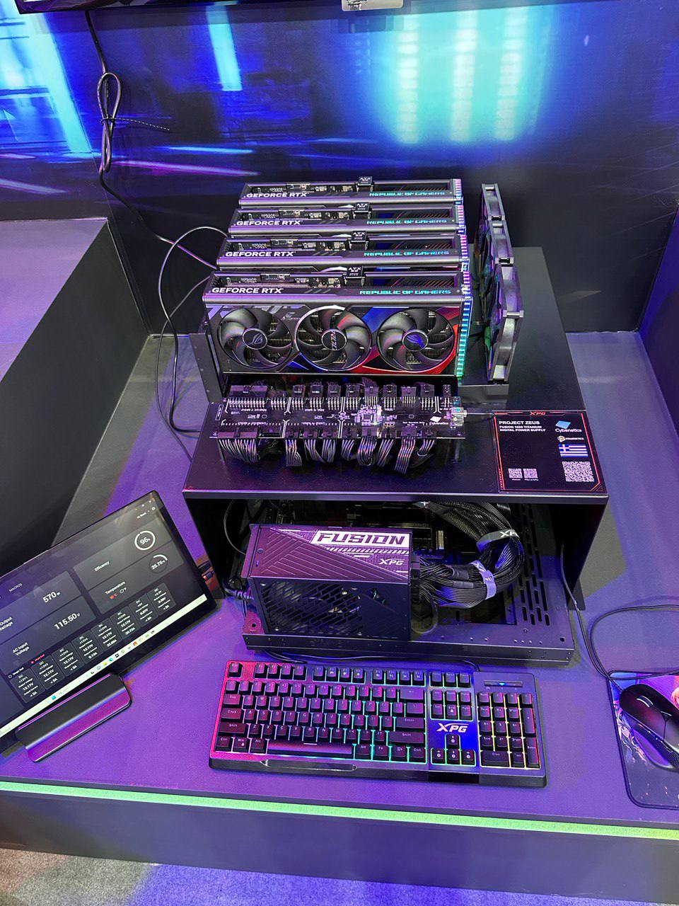 Компания Adata недавно представила 1600-Вт модель, изготовленную Delta по эксклюзивному контракту. На демонстрационном стенде были объединены четыре Asus Strix RTX 4090. При максимальном напряжении система потребляла до 2 кВт, а в среднем — 1700 Вт.
