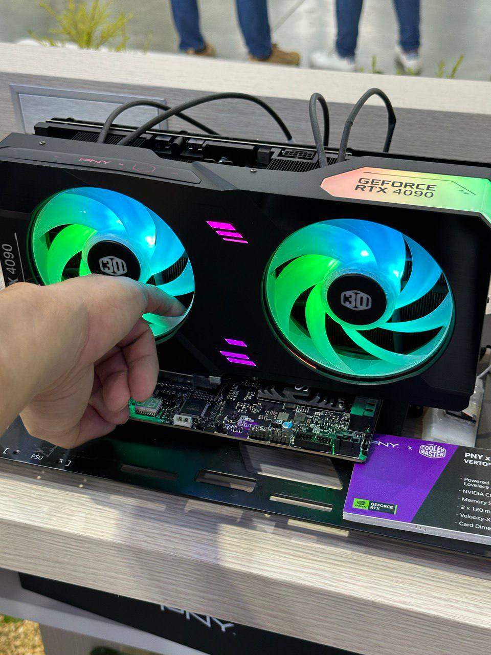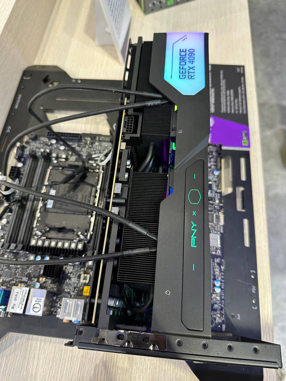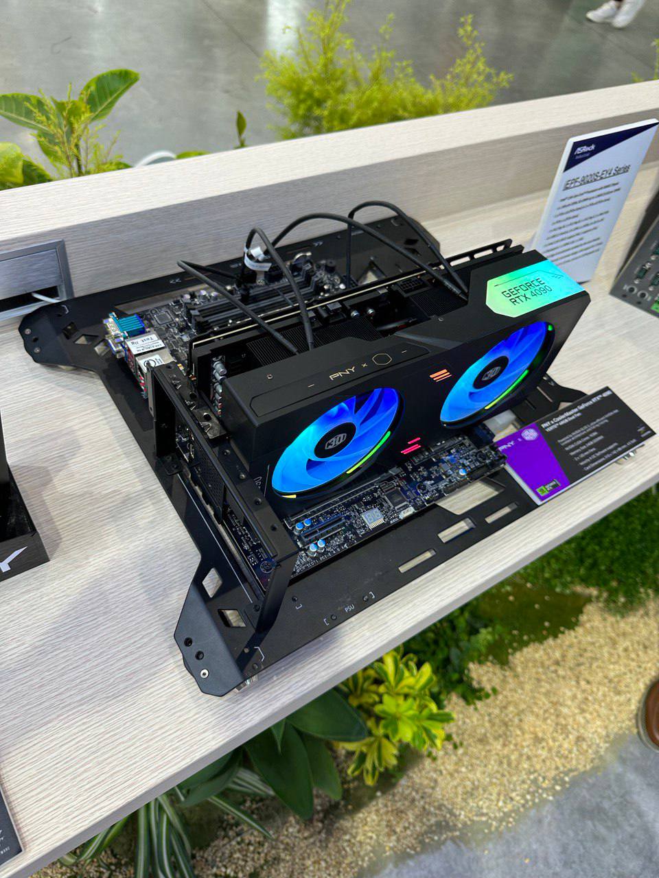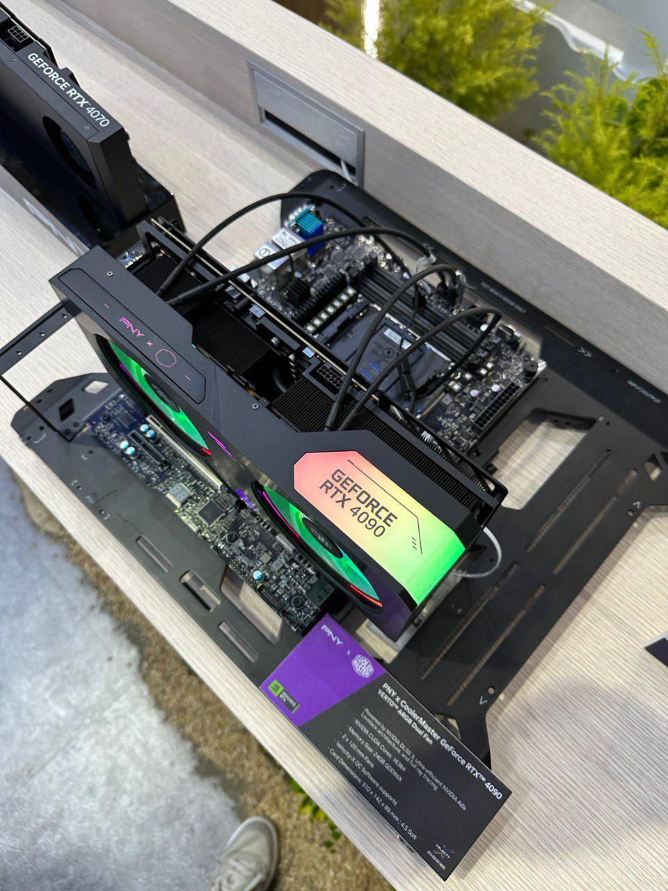 Эта революционная концептуальная модель никогда не будет доступна широкой публике. Это совместная работа компаний PNY и CoolerMaster, и получившийся продукт действительно впечатляет. Выглядит весьма неплохо вживую. Однако переплетение кабелей, возможно, снижало общий эффект.