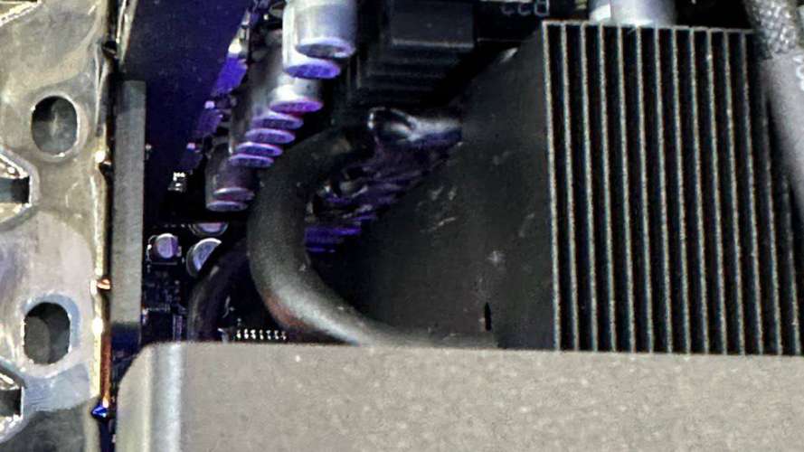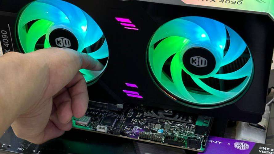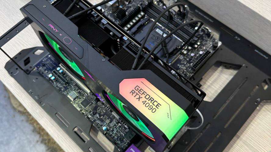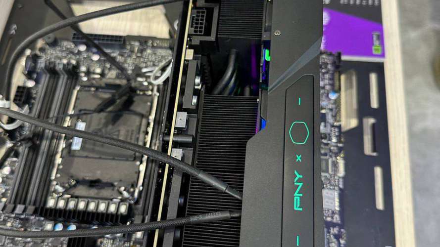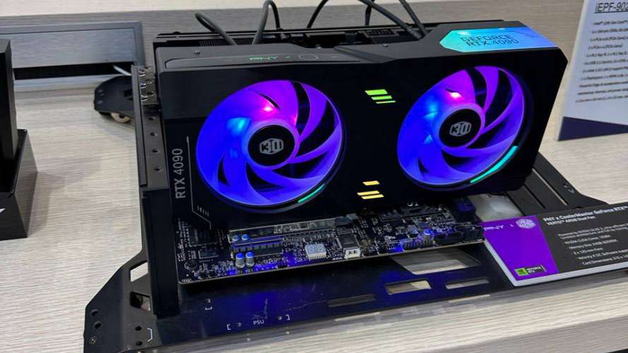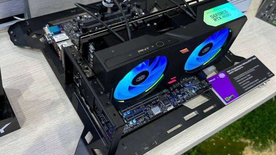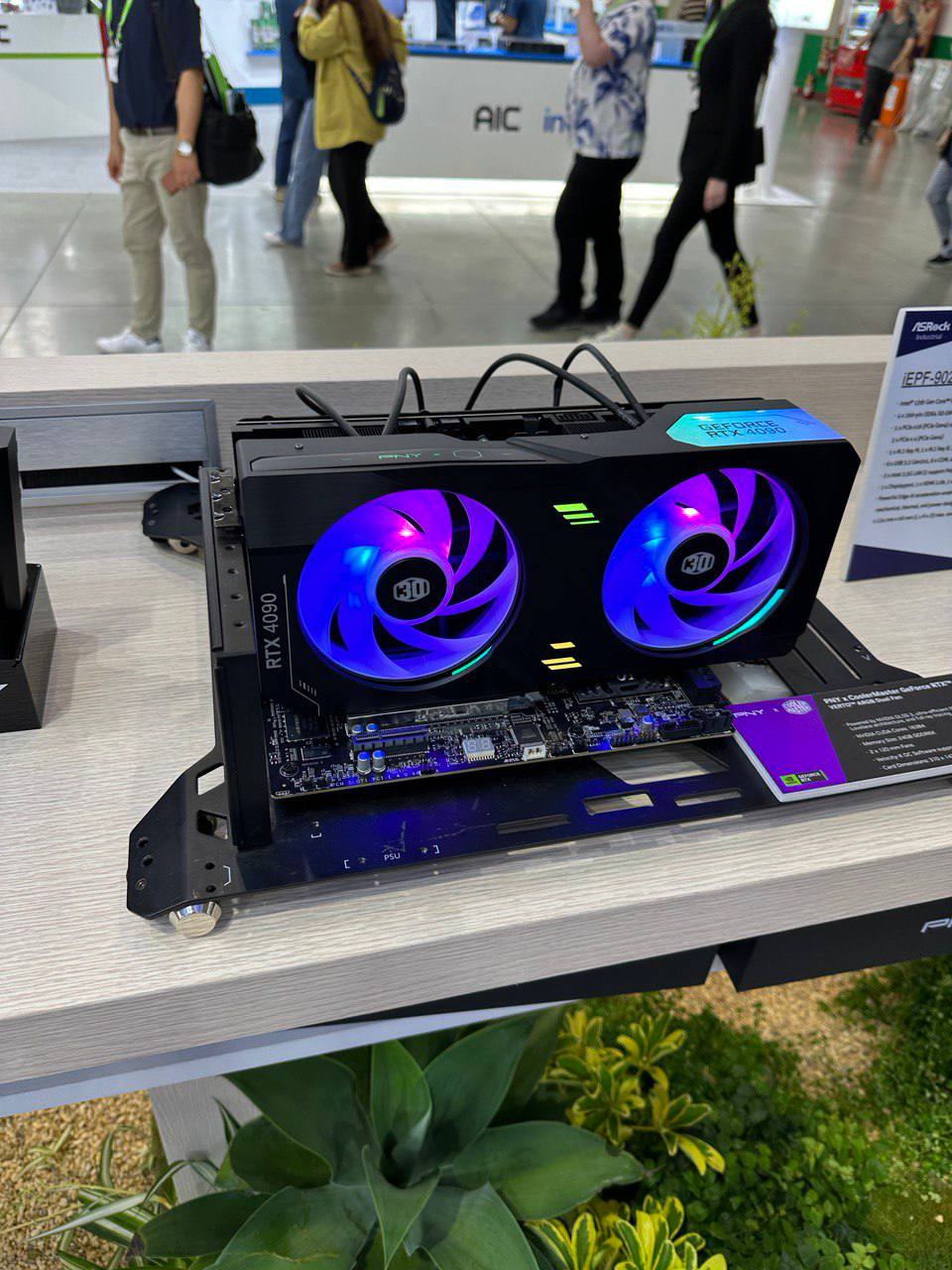 Эта революционная концептуальная модель никогда не будет доступна широкой публике. Это совместная работа компаний PNY и CoolerMaster, и получившийся продукт действительно впечатляет. Выглядит весьма неплохо вживую. Однако переплетение кабелей, возможно, снижало общий эффект.